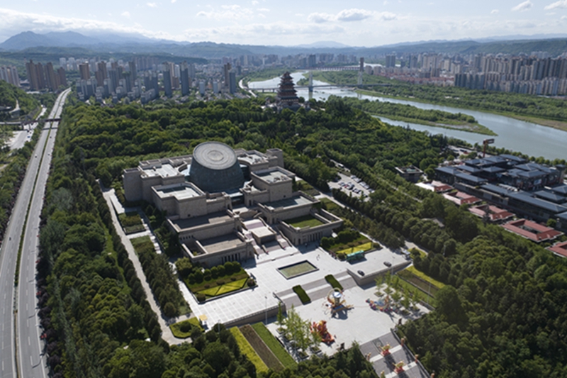 这是陕西宝鸡青铜器博物院和中华石鼓园景区(2024年5月9日摄,无人机照片)。新华社记者 邵瑞 摄